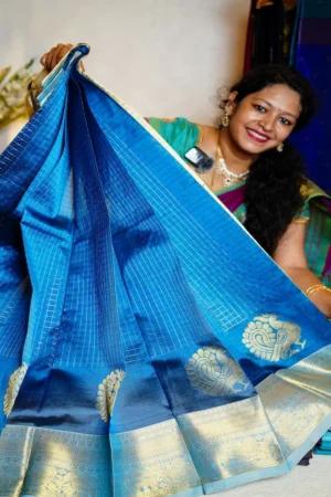 The Maharani Series is a collection of the finest handloom Kanchi silk cotton and Korvai silk cotton weaves in the most exquisite designs like Vaira Oosi, Mayil Chakram Kattam, Retta Pettu, Lakshadeepam, Vertical Zari Stripes, unique double zari (gold and silver) Elephant buttas, etc. Owning a Kanchi silk cotton is like owning a piece of tradition.