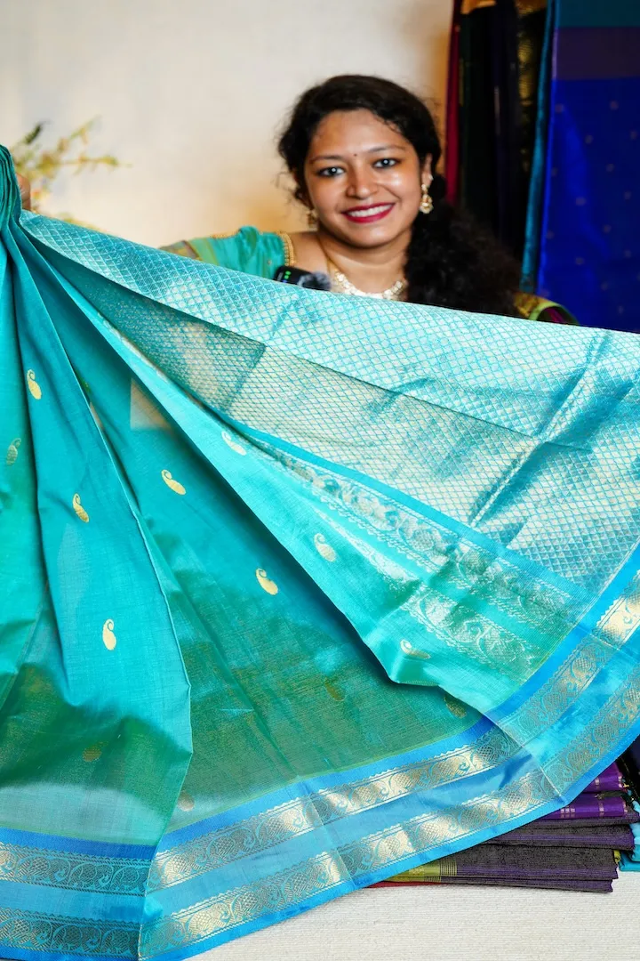 Gorgeous handloom Kanchi Silk Cotton saree.